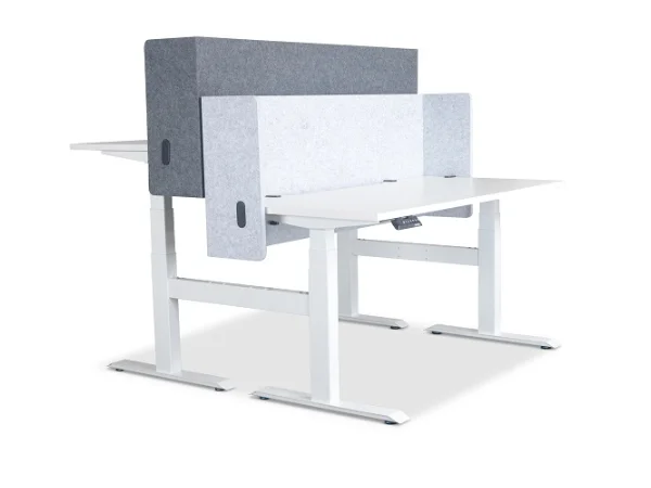 Vertilift Acoustic Screens come in a variety of sizes to suit different desk systems and layouts. Whether you need a single wraparound screen or a bank of back-to-back dividers, we can customise to fit your needs.